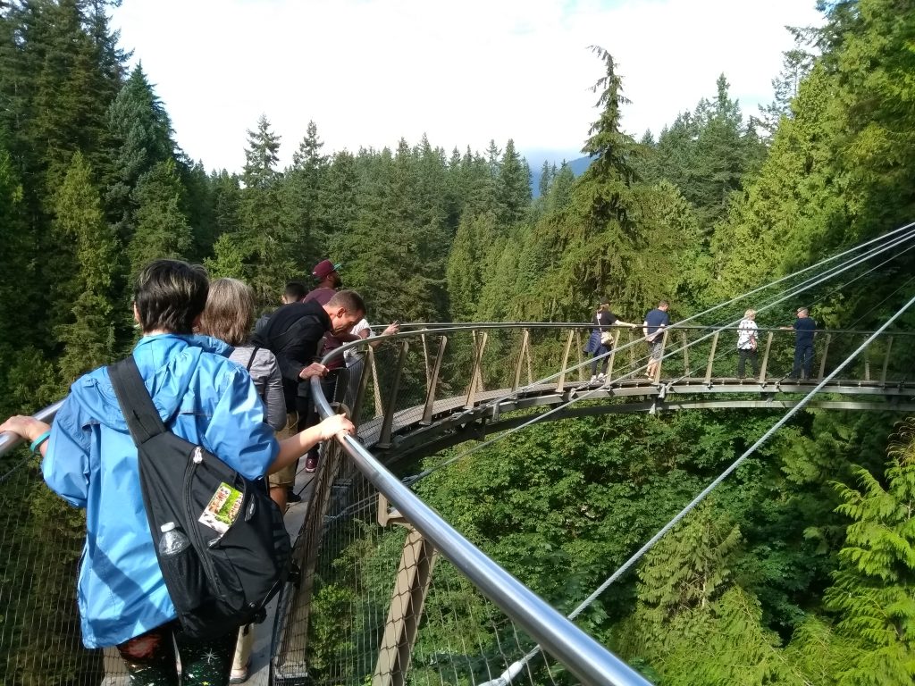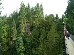 In kurzen Abständen verlassen Pendelbusse den Canada Place in der Innenstadt Richtung Nord-Vancouver. Nördlich nahe der Stadt gibt es die Capilano Hängebrücke für Fußgänger zu sehen. Victoria und ich besuchten den dazugehörigen Park letzten Sonntag.